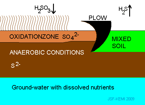 "Part of the dataset used in this publication was made available by the Swedish Forest Soil Inventory, with responsibility in the Department of Soil and Environment, SLU. The author is solely responsible for the interpretation of data." I have through chemometric analysis of soil samples from north of Sweden found several interesting phenomena where elements that form less soluble compunds outcompete more soluble compounds. This cause a characteristic gain in plant-nutrition and transport of ions down the height-curve. Dear Reader! In the late summer of year 2000 I traveled along the coastline of northern Sweden and along six rivers inlands, measuring pH in river-water and plant-nutrition in soil at 20 km intervals. This resulted in 28 test-spots and I complemented with data of 20 elements analyzed by SLU "MarkInfo" for each test-spot. The data early in statistical analysis divided into two groups, one that had tendency to increase downhill and the other staying uphill. By further analysis it shows that these effects can be explained by the theory of Competitive Solving and Crystallization, where the ions compete in forming hard to solve compounds in deficiency of an-ions as sulfide, sulfate and carbonate. Hard to solve compounds also seems to be inhibiting sulfide oxidation to sulfate (affects river pH) and cause an interesting secondary release of plant nutrition by elements as lead, zinc, zirconium, titanium, barium and silica. These form hard to solve compounds with a selection of sulfide, sulfate, silicate and phosphate causing deficiency of an-ions for easy to solve plant-nutritious ions and thus cause release of nutrients and transport of ions downhill. The project is now in progress to optimize the proportions between solving and crystallization in order to maintain long term plant nutrition. Short results of ten years of tests: One of the test-soils, that confirms the chemometric material is added with extra sulfur as CaSO4 (gypsum). The naturally bacterial reduction of sulfur (VI) to (-II) at anaerobic conditions is confirmed by the depletion of barium, as barium sulfide is soluble in water and barium sulfate is not. A sulfidic soil is accomplished. Another of the test-soils is added with ZrO2 in excess, then zirconium disulfide forms. As this ZrS2 is not soluble in water, there forms a deficiency of free sulfide. As phosphorus is pretty bound related (but not directly) with sulfide, it comes free in order to fertilize plants and is depleted into deficiency. A great number of nutrients are lightly bound with sulfide, and are remaining in the soil as the amount of free sulfide is small. Hypothesis #2.4·Metal sulfides and water form metal hydroxides and hydrogen sulfide (reversible).·Silicic acid and metal hydroxides react to form amorphous metal silicates. -By amorphous, I mean more or less disordered crystallization. ·Metal silicates can react with sulfuric acid to form metal sulfates of varying solubility. Phosphoric acid does not readily react with metal silicates (which dominate when sulfur is deficient). As a result, phosphorus leaches out when sulfides are scarce, such as when bound with an additive like ZrO2, which forms insoluble ZrS2 in the soil. This leads to a temporary increase (a few years) in available plant nutrients (phosphorus) and alters soil chemistry, where phosphorus leaches out and other elements, such as iron, calcium, and magnesium, bind as silicates. Insoluble metal silicates bind in the soil when sulfur is scarce and when silica dissolves into silicic acid. Phosphoric acid, however, readily reacts with metal sulfides dissolved in water as metal hydroxides, mostly forming insoluble metal phosphates. Adding an excess of sulfur, such as CaSO4, results in bacterial reduction to sulfide in the soil. Hydrogen sulfide oxidized to sulfuric acid reacts with amorphous metal silicates and is reduced to metal sulfides, which dissolve into metal hydroxides. Hydrogen sulfide may also directly react with amorphous metal silicates to form metal sulfides of varying solubility. Subsequently, metal phosphates form, binding phosphorus until it becomes unavailable. Phosphorus remains in the soil, while excess sulfur provides a leaching pathway for soluble silicates, sulfides, sulfates, and easily soluble hydroxides. Metal phosphates can also react in equilibrium with silicic acid, yielding phosphoric acid and metal silicate. Hydrogen sulfide can oxidize into sulfuric acid, which reacts with both metal silicates and metal phosphates, thus affecting equilibrium. Sulfuric acid is less prone to react with metal phosphates than with amorphous metal silicates and therefore does not leach out phosphates significantly. I now look forward to deriving and verifying this. Contact: Joakim@ekomatte.se This first diagram shows how easily dissolved compounds maintain available and mobile, and how hard to dissolve compounds rarely interact in solution. The white field represents the time of the compound in water solution, and the black field represents time of the compound as solid.